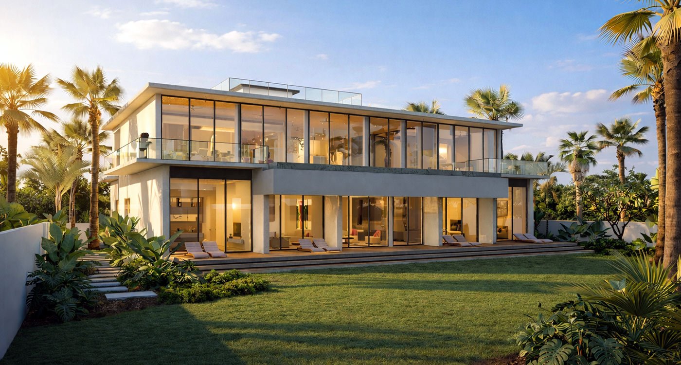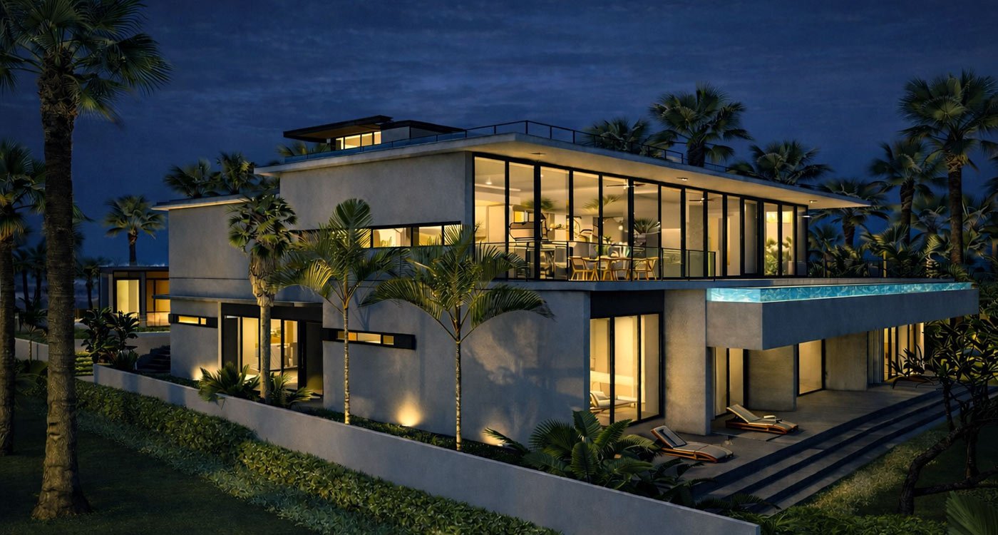 The residence boasts seven spacious bedrooms, each designed for privacy and comfort. At its heart, an expansive lounge features a striking glass window submerged inside the pool, creating a breathtaking visual connection between the living space and the shimmering water. Entertainment is elevated with a private cinema room, offering the ultimate retreat for movie nights.