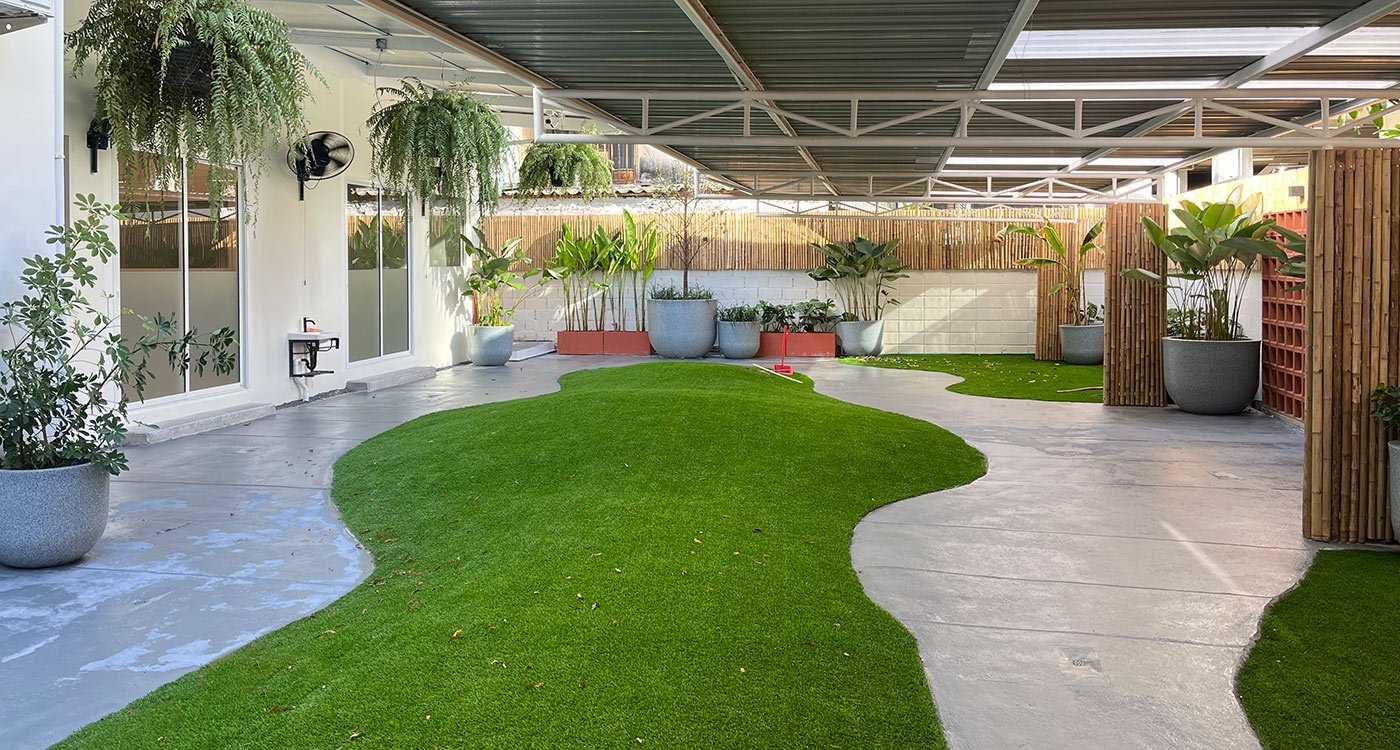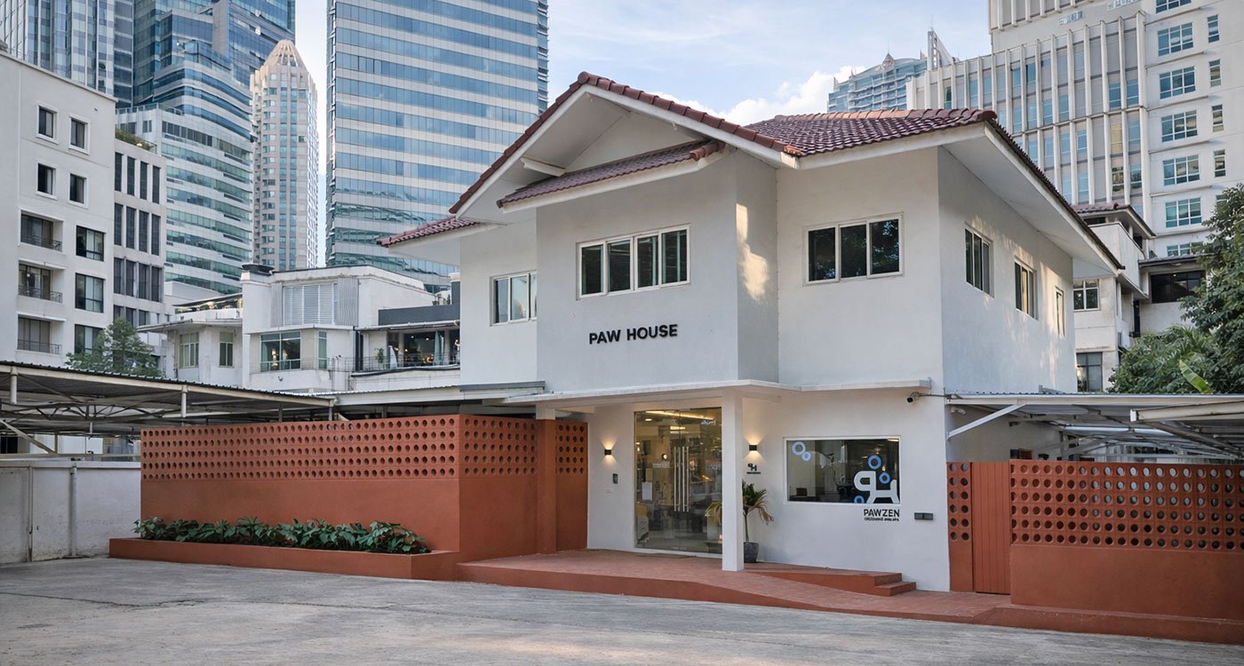 Paw House Sathorn is a dog daycare and hotel designed to accommodate play, rest, grooming, and social interaction in a calm, well-structured environment. The project includes two outdoor gardens, multiple playrooms, a dog pool, grooming facilities, and a coffee shop with outdoor seating, creating a welcoming destination for both dogs and their owners.