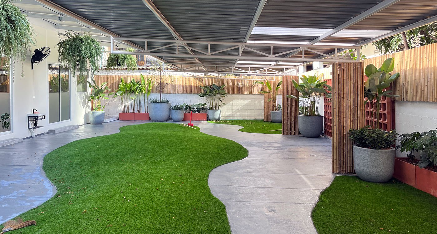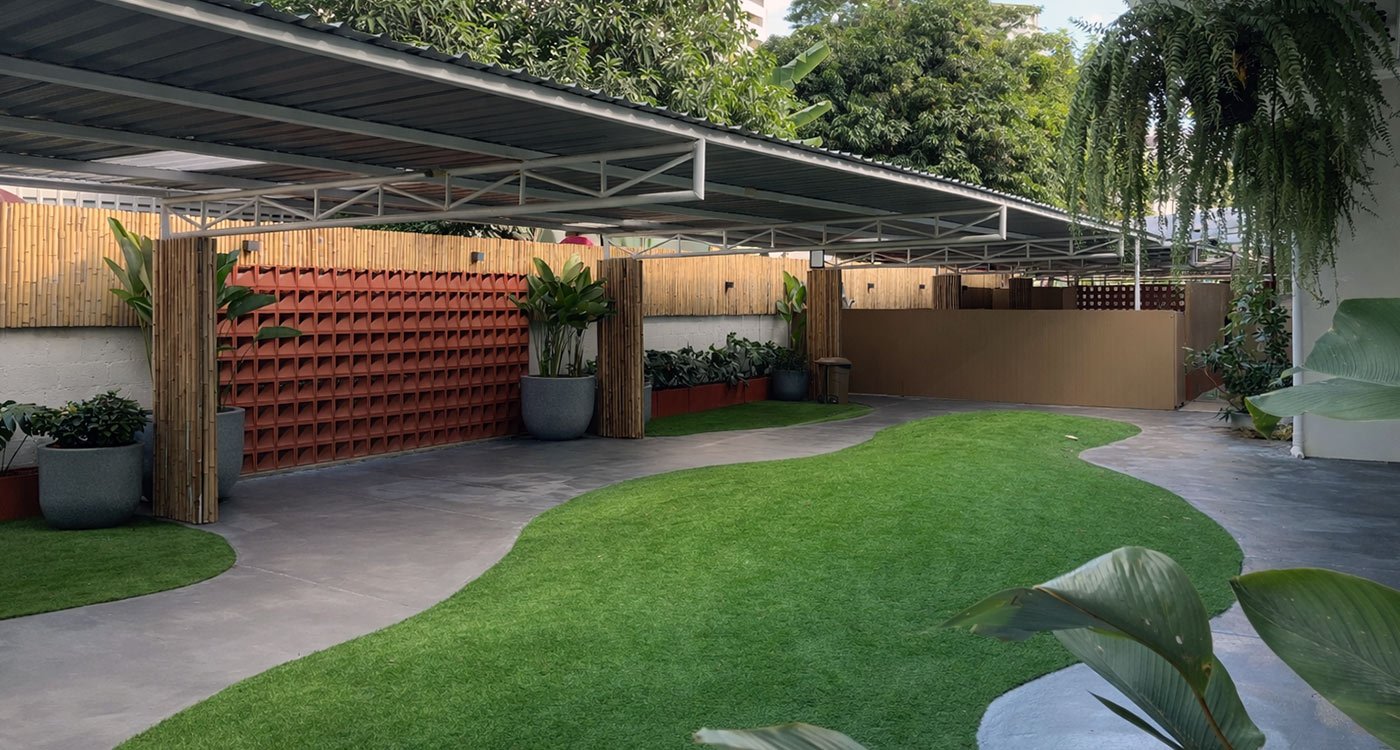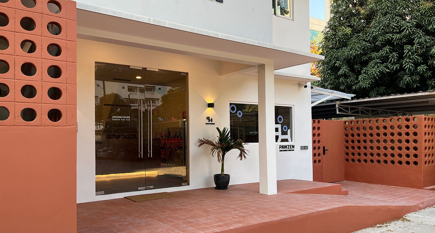 Designed by regroup architecture for PawHouse, the project is a building extension located behind an existing house. The original house now hosts the reception lobby, coffee shop, grooming area, and administrative offices on the upper floor. Portions of the former parking roofs surrounding the house were thoughtfully reused and integrated as covered areas for the gardens and pool.