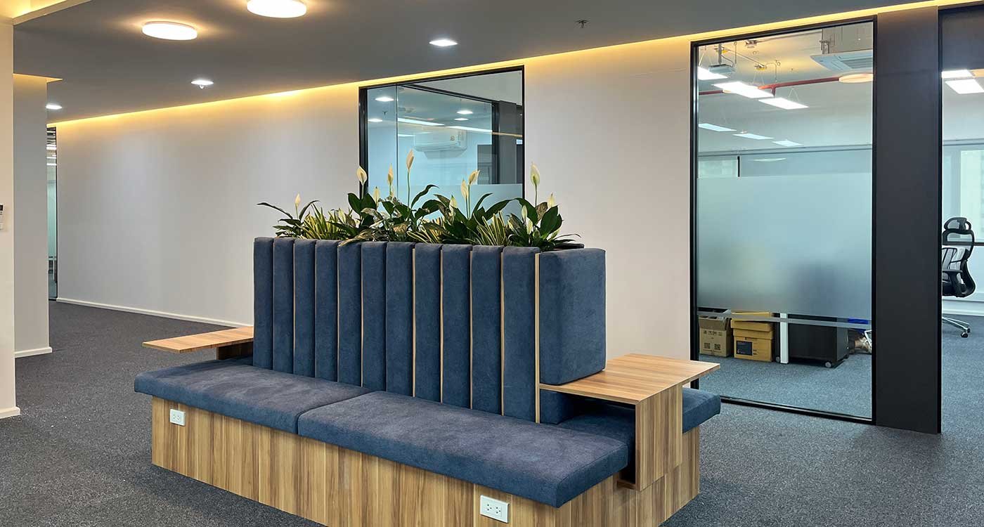 The Bangkok office of C. Melchers & Co. spans 560 sqm and reflects a contemporary approach to workplace design—efficient, flexible, and people-focused. Framed by windows on three sides, the office is flooded with natural light and offers panoramic views of the Bangkok skyline.