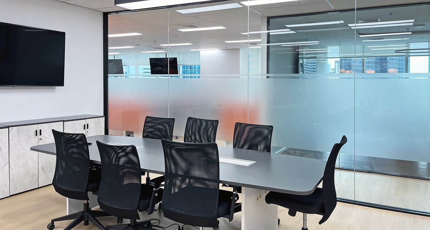 On the more private side, a boardroom provides a formal setting for client meetings, while smaller enclosed offices offer quiet zones for focused or confidential work.